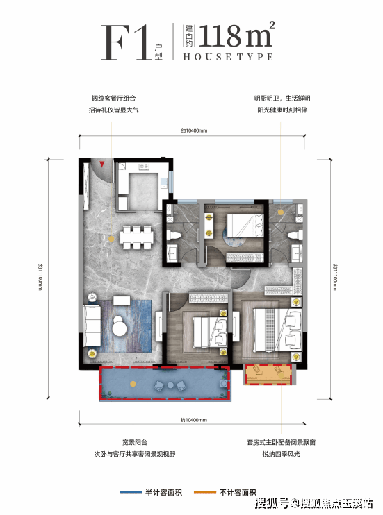高阶x宽境,城市绝版3T3品字型布局,其中建筑面积约168㎡环幕大平层产品,广袤客厅x约270°L型阳台落地幕墙,再一步延伸为住户提供俯仰天地之间的景观视野,秉承“让建筑彰显高阶身份”的环幕视野,整个室内格局严格遵循东方家族聚居礼仪,一侧私密休息区,一侧生活区,动静分区,互不打扰。