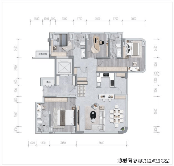 4室2厅3卫2阳台,赠送面积约27.66㎡,独享前梯面积约6.5㎡