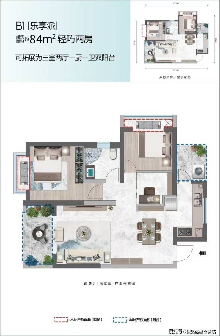 楼栋为蝶式设计,3梯6户,层高2.9米,容积率3.48。户型均为两室两厅一厨一卫,单套户型建筑面积为84.86-89.88㎡