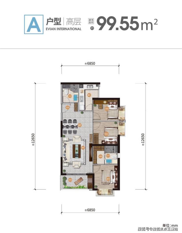高层C户型:约99㎡
