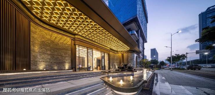 地标艺术立面,大面积弧线形香槟金铝板,勾勒城市天际线