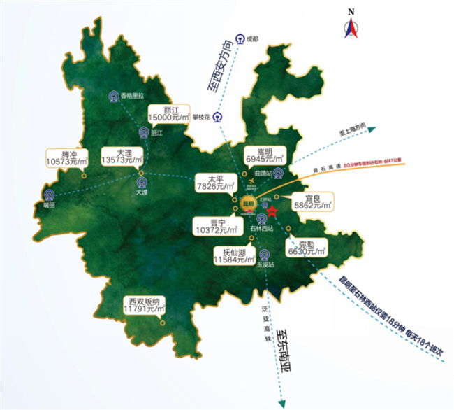 省内高铁开通区域,少有3字头房价。多少省外客户来到昆明石林这片宜居热土,爱生活者,举家搬迁成就第二故乡;爱投资者,相中了这里的发展价值,让资产保值增值!