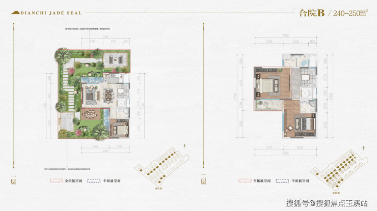 合院B户型:产权面积250平,花园面积:20-200平,实体院墙围合型花园,带车位,价格:980-1300万,独立花园