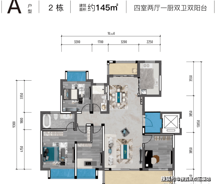 B户型 建面约185㎡ 四室两厅一厨三卫双阳台