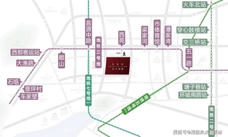 毗邻昆明主城“十字”发展主轴线-人民西路;连接市中心与西市区的重要通道,与西三环、西二环相交,加之地铁3号线的全线通车,极大提升了交通网络的核心地位