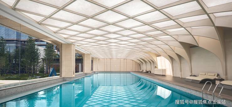 迈阿密「1000 Museum」曲线语言,新加坡金沙酒店天空泳池灵感,对标比赛级泳池,打造约600㎡美术馆级无界泳池,奢配 约175 ㎡泳池吧、约170 ㎡独立更衣系统。