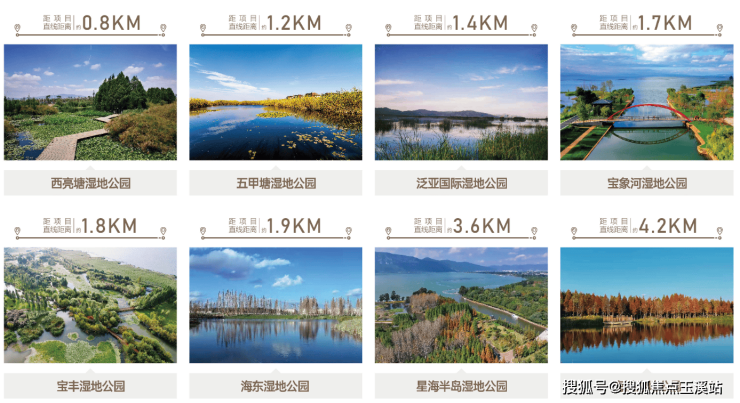 项目周边8大湿地公园环伺,公园总面积约6991亩,相当于20个昆明翠湖大小,负氧离子含量高于市中心30倍。