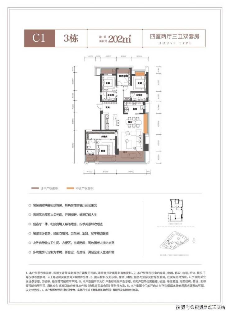 C御境:建面约203㎡ 四房两厅三卫双套房