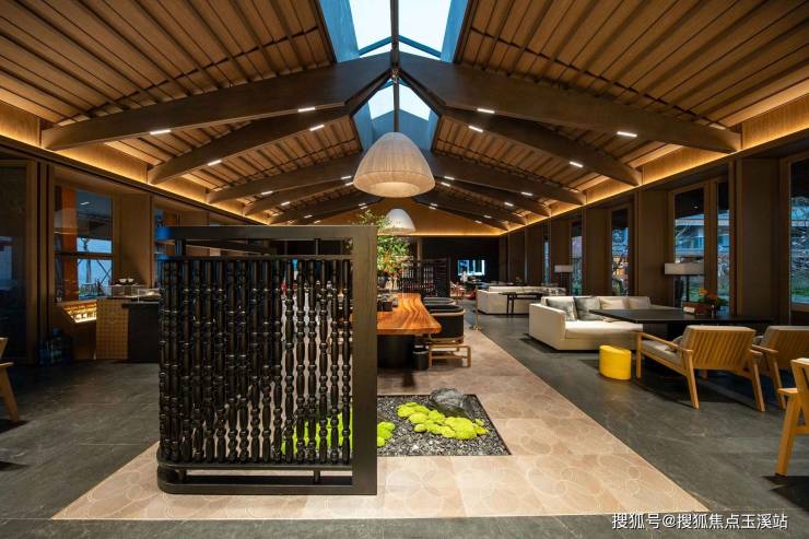 踏入品茗室,窗外是东方意境的四时场景,顶巧设天窗,引入自然光,明亮温馨,在此会见宾客好友,煮茶聊天,尽享闲暇时光。侯月湖沿岸打造小型活动平台,与园内景观遥相对望,屋檐下,在此会友,四时之景不同而乐亦无穷。