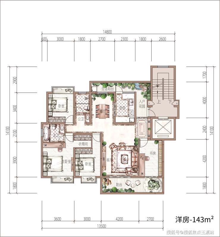 跃层,一楼下跃带花园:【毛坯】