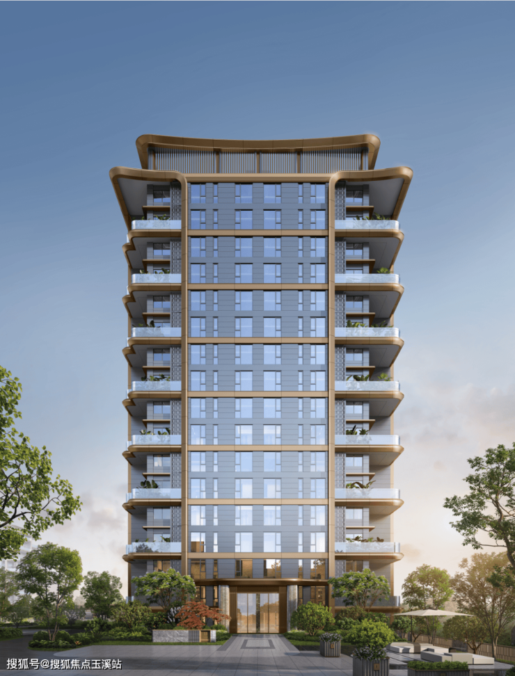 地标艺术立面,大面积弧线形香槟金铝板,勾勒城市天际线