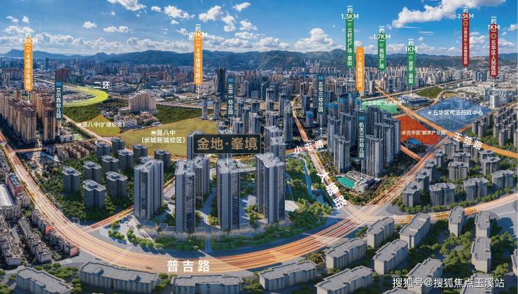 金地·峯境位于昆明五华区西北新城核心地段,快速上二环,通达全城。