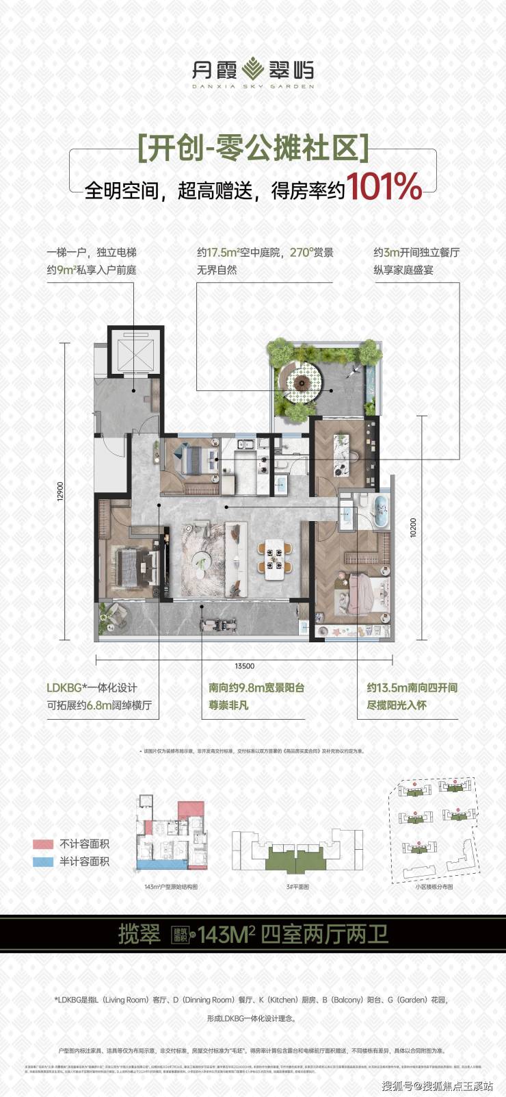 ①揽翠-143㎡-四室两厅两卫|得房率超101%