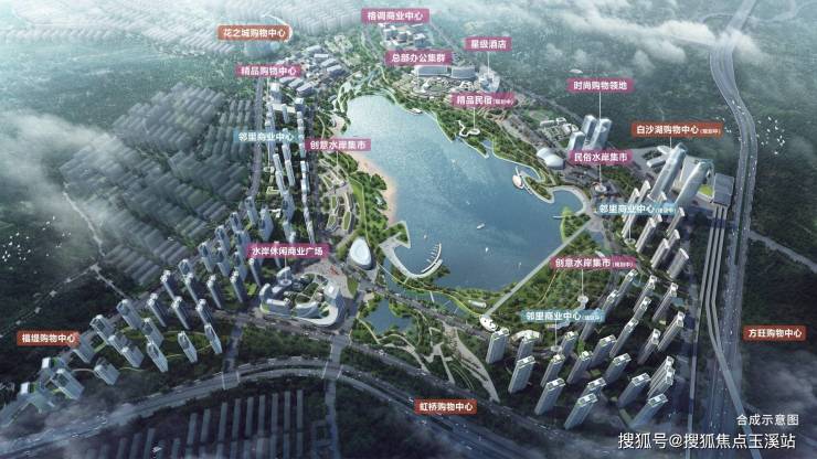 【滨湖核心区】白沙湖为中心向四周辐射,滨湖区域参考了国际标杆城市滨水案例—悉尼达令港、新加坡滨水港进行规划,打造“一大中心、三大组团”构成的滨湖城市新中心。