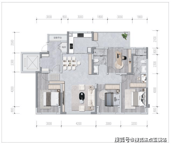 4室2厅3卫2阳台,赠送面积约27.66㎡,独享前梯面积约6.5㎡