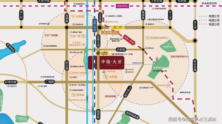 地铁:地铁2号线小街站下楼即享 路网:三横(二环南路,日新路,广福路)三纵(前兴路,官南大道,北京路南延线),直达海埂公园,南亚、万达商圈,快速至机场,高铁站