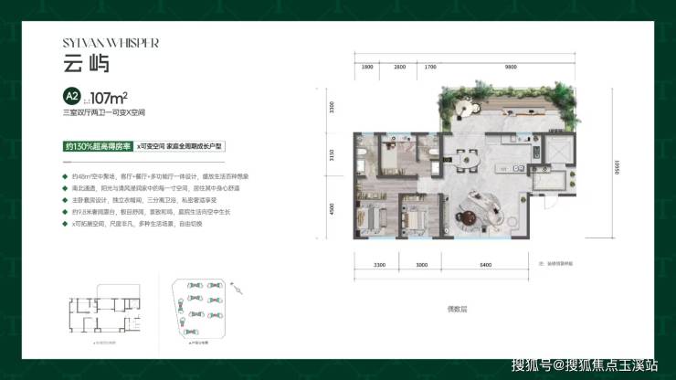约75㎡无界空中聚场 尺度堪比一套房星墅 城市森林度假空中墅四室两厅三卫 双套房
