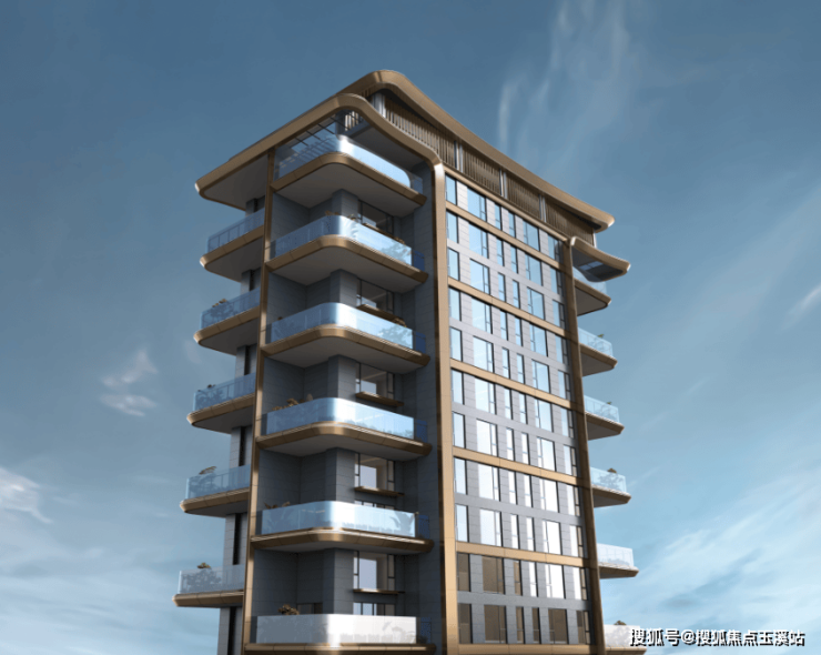 大面积弧线形香槟金铝板,勾勒城市天际线