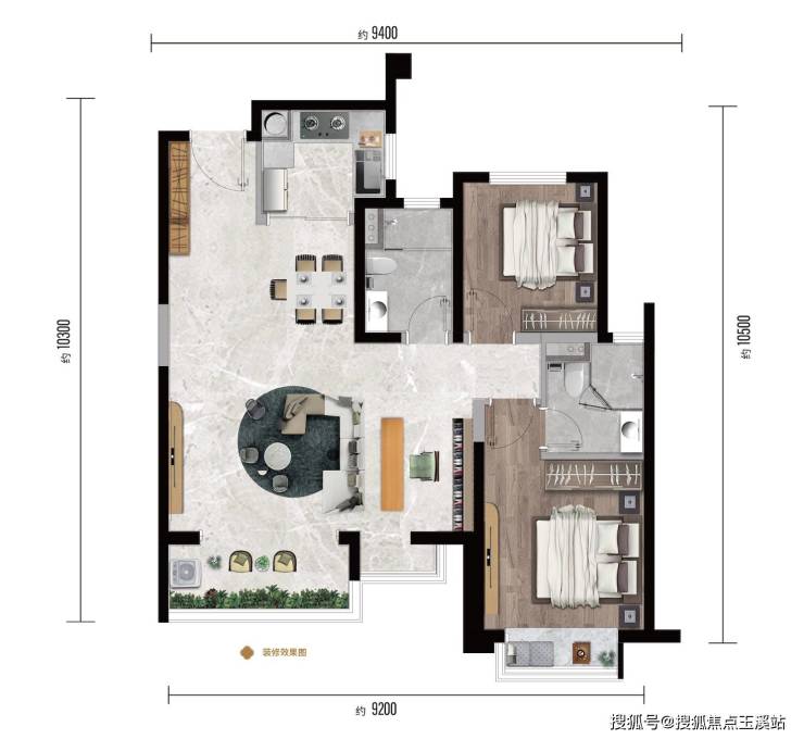 *104㎡户型图,前后开阔视野,客厅6.1米超大横厅,双卫设计,明厨明卫,2+1户型改造空间
