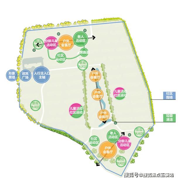 核心景观轴划分休闲嬉水空间、溪流跌水、水上栈道空间、亲水码头空间、廊间小憩空间营造高端浪漫的溪居生活环境。两侧此景观轴线,以儿童亲子乐园为主,有趣的园区和以休闲游园为主,静谧舒适的康养主题园区。