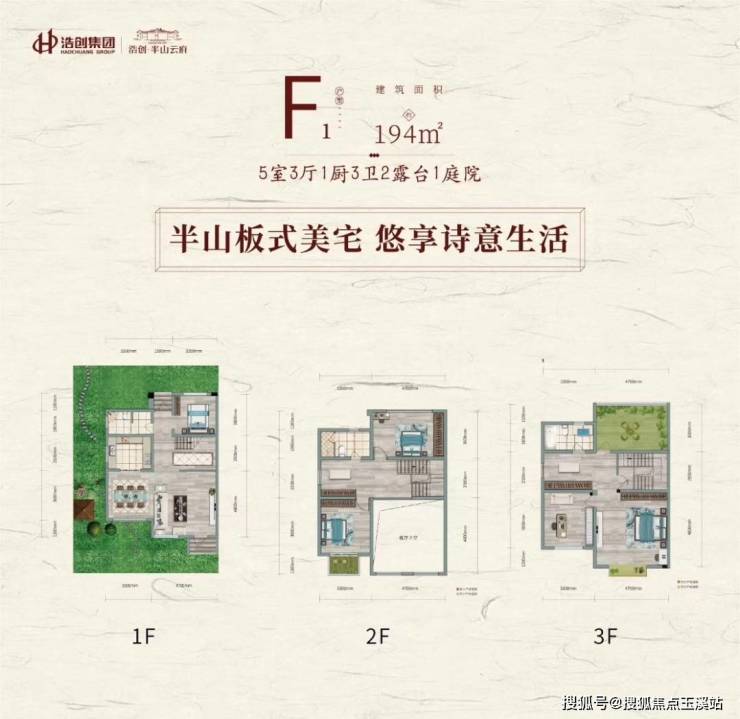 F1户型:194㎡:5室2厅3卫2露台 可拓展面积159㎡ 赠送率约82%