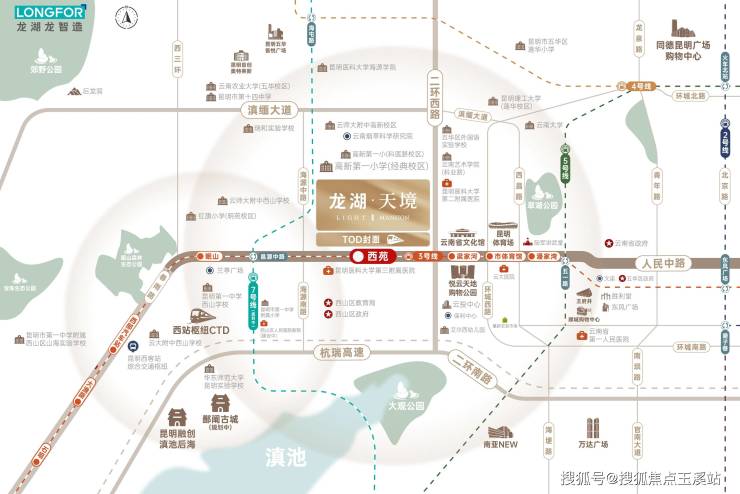作为昆明城市更新的标志性项目,龙湖·天境占据着无可复制的黄金区位。项目坐落于人民西路与地铁3号线西苑站的交汇处,这种"地铁上盖"的先天优势,让业主能够瞬间接入昆明最核心的城市资源网络。1站可达悦云天地总部基地,3站直抵翠湖人文休闲区,5站即达顺城、王府井等顶级商圈。这种与城市资源的零距离接触,正是当代都市精英最珍视的生活特权。