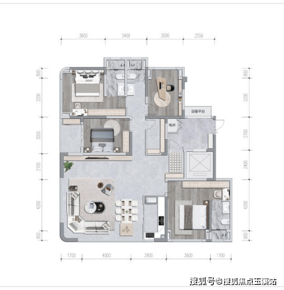 4室2厅3卫2阳台,赠送面积约27.66㎡,独享前梯面积约6.5㎡