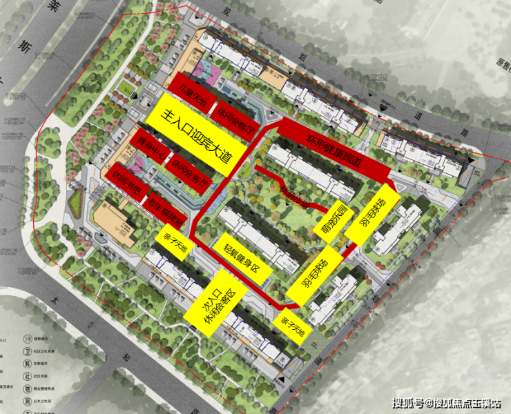 8、全零段运动场所分布社区各个角落,环形健康跑到,双羽毛球场,约400㎡集中运动场等;