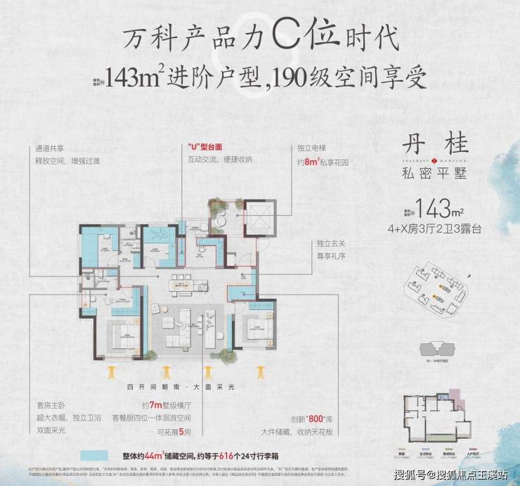- **143㎡丹桂**首创1T1户电梯花园入户,7米横厅可改造为餐厨洄游空间,主卧双面采光尽显奢华;