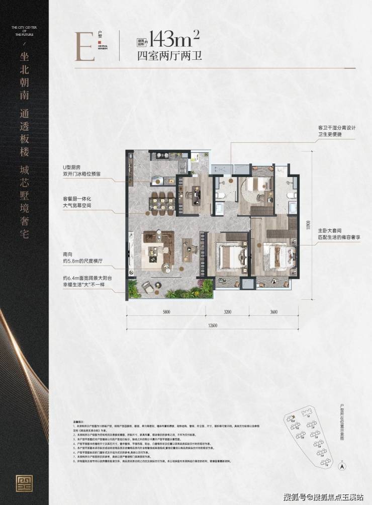 1号楼1号房的94㎡户型是项目面积最小的产品,也是首开性价比最高的选择,预计价格在13500—15000元/㎡之间。1号楼2、3号房的99㎡户型则是最具投资价值的三房产品,价格区间为13800-16000元/㎡,楼层越高,价格相应提升。10、6、7号楼的128㎡户型价格预计在15700-17000元/㎡之间,而110㎡户型作为主力户型,因为是板楼设计,南北通风采光,均价预计在15300-16800元/㎡。10号楼3号房的143㎡户型是整个地块中最稀缺的高端产品,价格区间为16800—17800元/㎡。