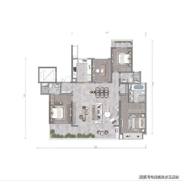 以198平方米的户型为例,鳳起蘭庭将绿城对空间美学的理解体现得淋漓尽致。该户型采用经典的四房两厅三卫设计,南北通透,动静分区合理。约7米宽的横厅设计,配合全景落地窗,让室内采光充足,视野开阔。主卧套房设计,配备独立衣帽间和豪华卫浴,私密性极佳。厨房采用中西分厨设计,配备高端品牌厨电,满足现代家庭的烹饪需求。多功能书房可根据家庭需求灵活改造,彰显了户型设计的实用性与前瞻性。