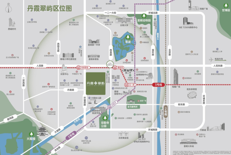 地段优势:位于昆明一环,地铁3号线市体育馆,云大医院,周边生活与医疗配套极为成熟。