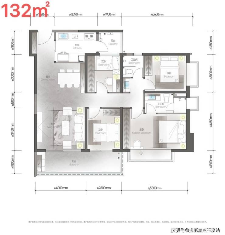 河印:建面约132㎡,四室两厅两卫