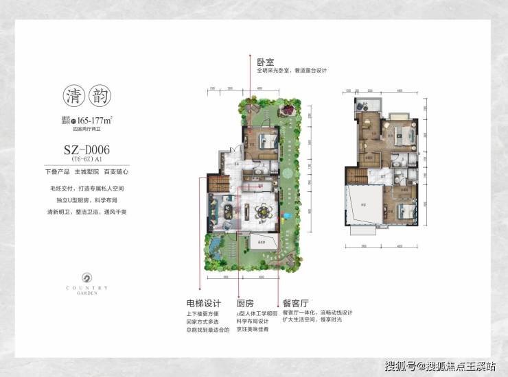 - **下叠产品**(177㎡/166㎡)以55-95㎡南北花园为亮点,通过33㎡挑空拓展,实际得房达287-302㎡,310-340万总价即可拥有带私家院落的主城别墅;