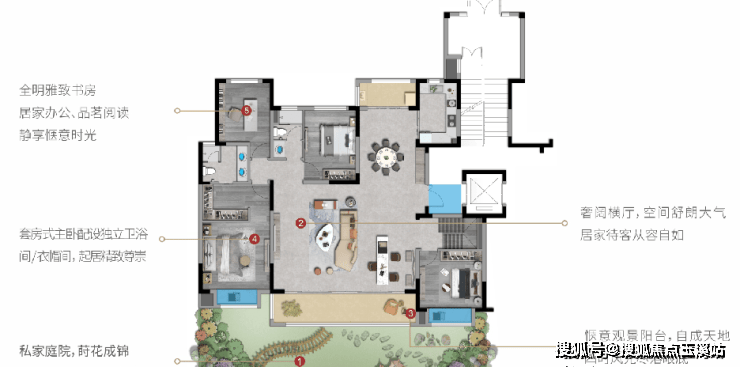 花园跃墅,建筑面积约185㎡,四室两厅一厨三卫双阳台,赠送约60㎡花园及约185㎡负一层