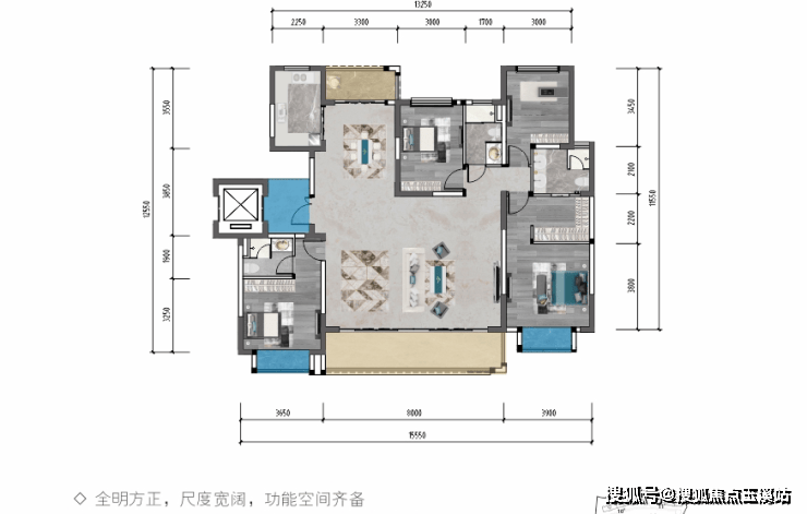 B户型 建面约185㎡ 四室两厅一厨三卫双阳台