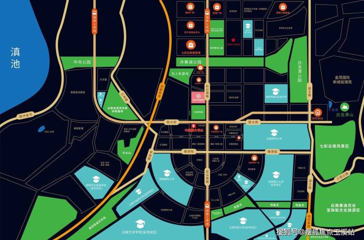 项目周边有六大公园,洛龙湖公园,白龙潭公园,春融公园,春城公园,呈贡中央公园(约5100亩),中央公园,捞鱼河湿地公园。