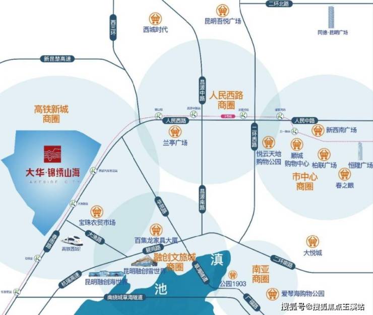 高铁:紧邻高铁西站,规划2027年建成,届时将连通昆明南站;