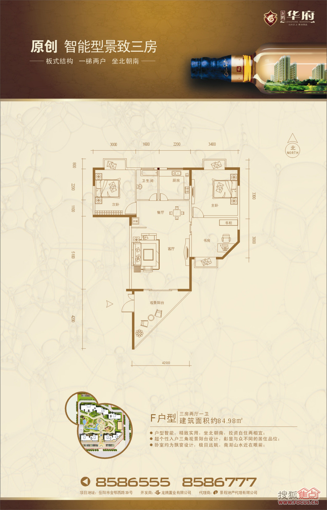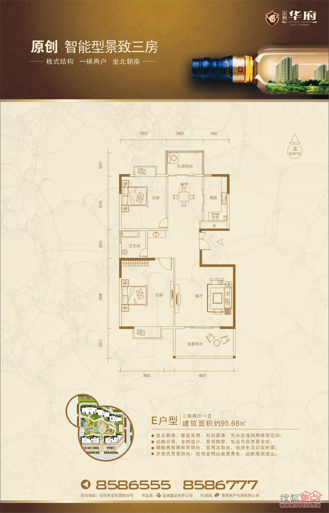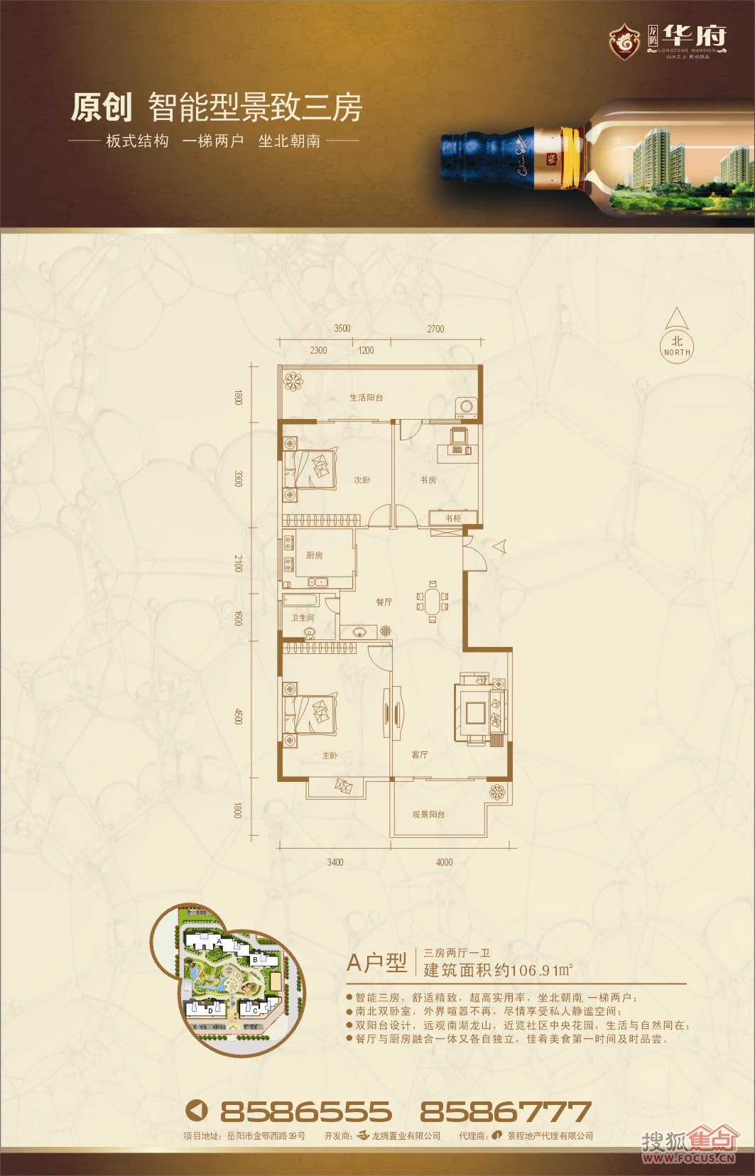 45平米贵族1房,90平米舒适2房、105平米精致3房、148平米复式4房,坐北朝南,在有限的面积上,科学设计,精巧布局。户外飘窗优质灵动,户型结构黄金组合,创造更为广阔的生活空间。儿童乐园、百年四季青广场、休闲中心等配套设施一应俱全。拥有中空双层玻璃、智能化安全体系、名牌电梯、光纤上网、可视对讲门禁等高端配置,引进先进物管理念,尽显人性化关怀。