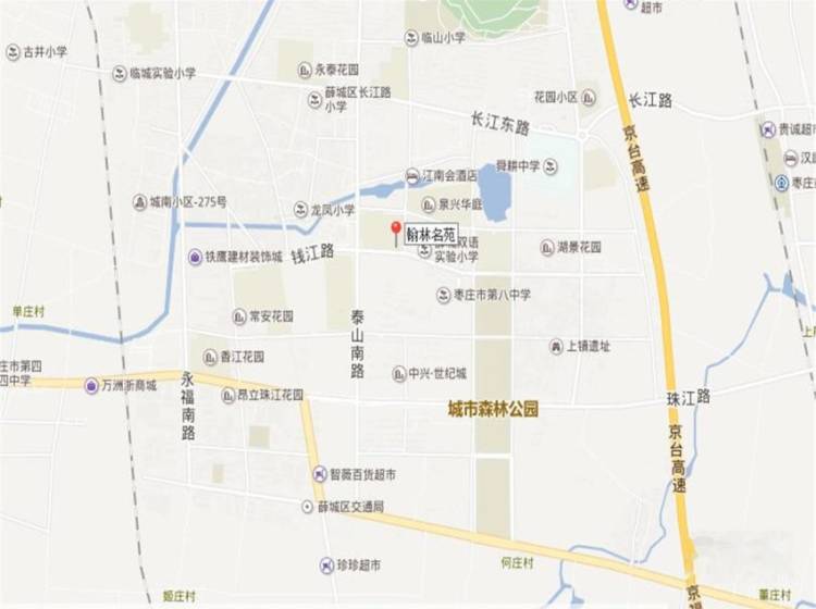 教育方面:城南实验幼儿园、双语小学、舜耕中学、实验八中; 医疗:矿务局医院,社区医疗服务站; 购物:贵城超市折扣店,永和豆浆等品牌餐饮; 餐厅:邻里客,凯菲士; 银行:农业银行、建设银行、工商银行、中国银行; 休闲方面:奚仲广场、奚仲湖、滨河公园、临山公园; 政府:财政局、税务局、公安局等; 交通:顺着泰山路向南走直接到达小区,中山路、香江路、钱江路、珠江路等均在项目周边,102,104路公交车、京沪高铁枣庄站、枣庄西站。