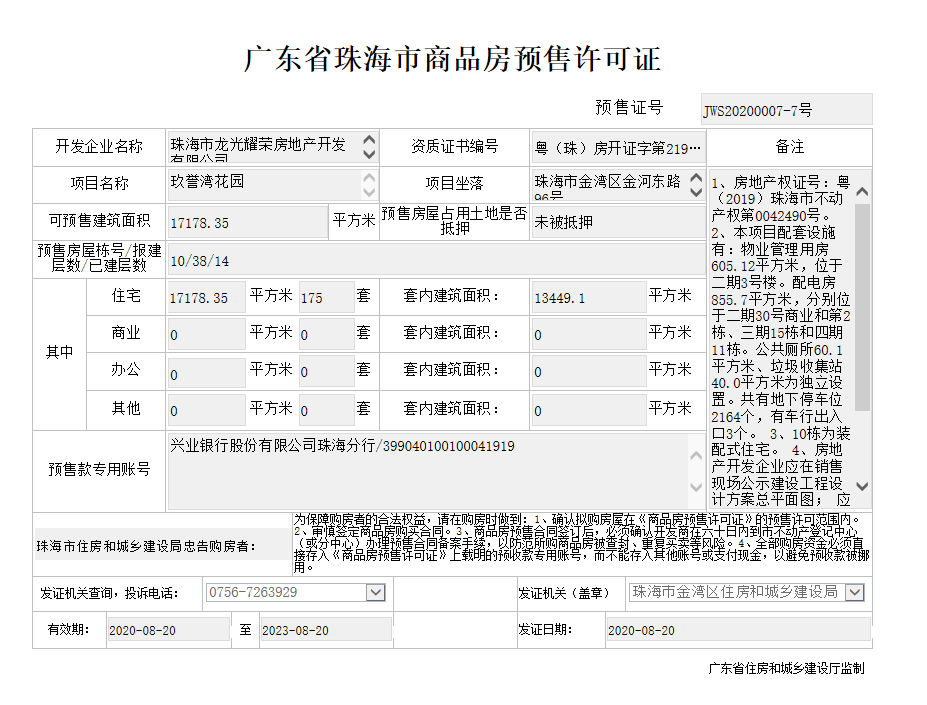 - JWS20200007-7号 详情发证时间 2020-08-20绑定楼栋10栋证件照片