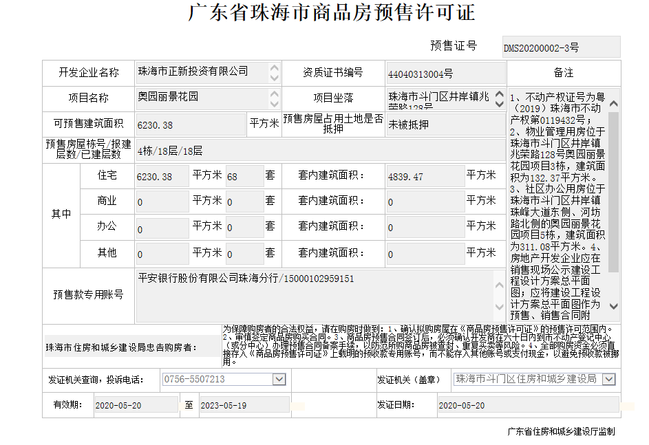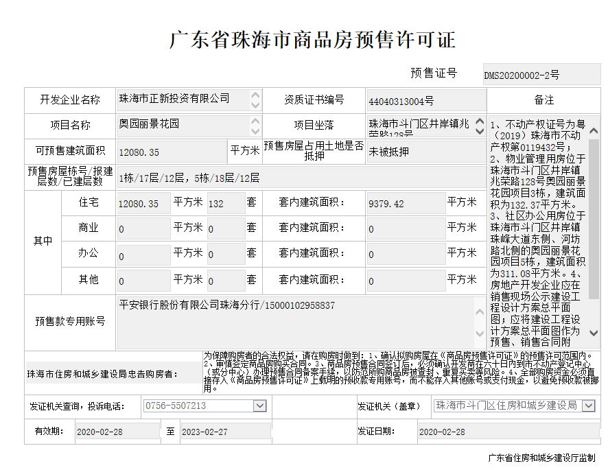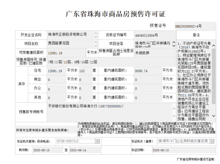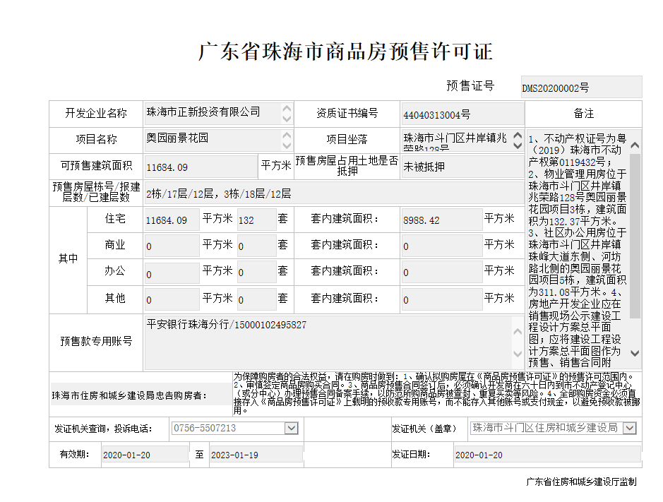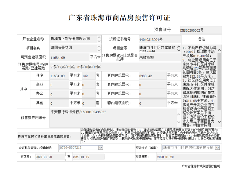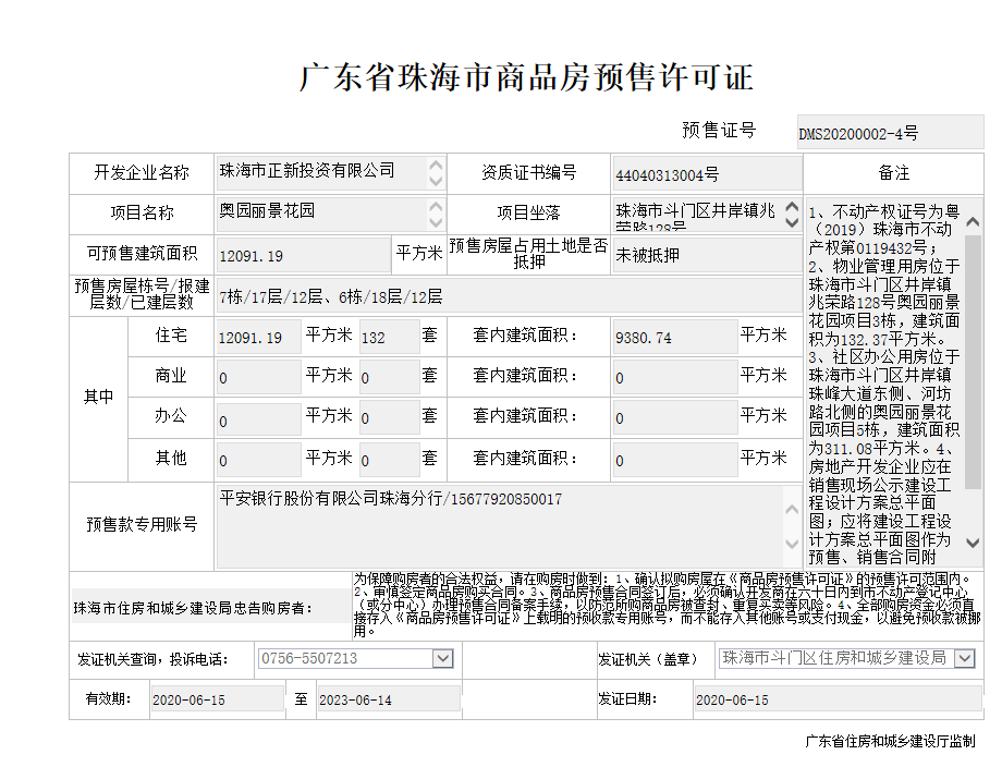 银行:中国工商银行(珠海斗门支行)、珠海农商银行(白藤湖支行)