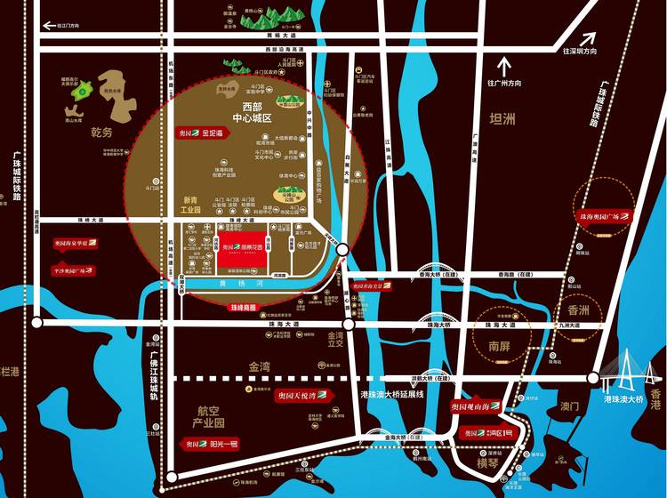 自驾: 香洲路线:明珠路→前山大桥→珠海大道→珠峰大道→项目