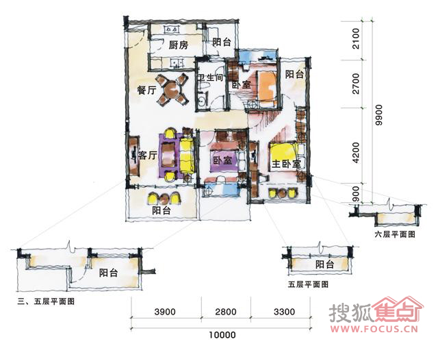 充分考虑当地的自然气候条件和现代城市人们居住的生活习惯,户型设计注重人与自然的亲近关系,南北厅形成对流穿堂风,客厅连接大型外突阳台,卧室采用宽阔的落地飘窗,使住户一方面争取到更多的自然通风采光,能尽情享受室外景观。平面设计的另一个特点是在首层的户型中均有一个大的室外花园,并在一,二层采用了退台的做法,争取到了更多的室外空间。