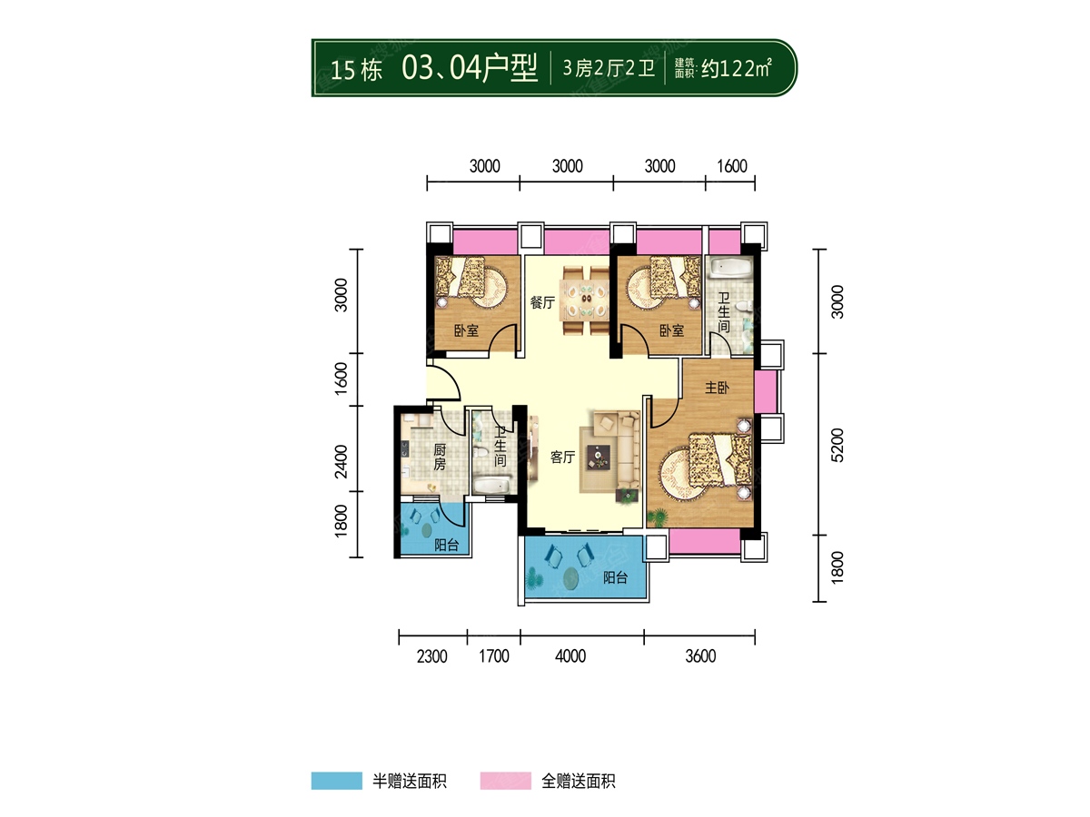 3室2厅2卫-15栋03、04户型