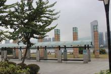 公车46路前河东路中站下;公车21、55路港二路站下;公车21、34、36、55、608路到海荣新村站下;公车21路到港一路,601夜专线、207、21、34、36、55、601、601B路到港昌中站,21、55、46路到权晖花园站下