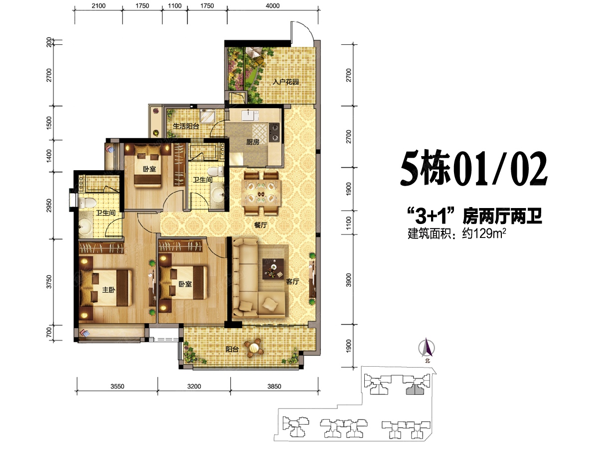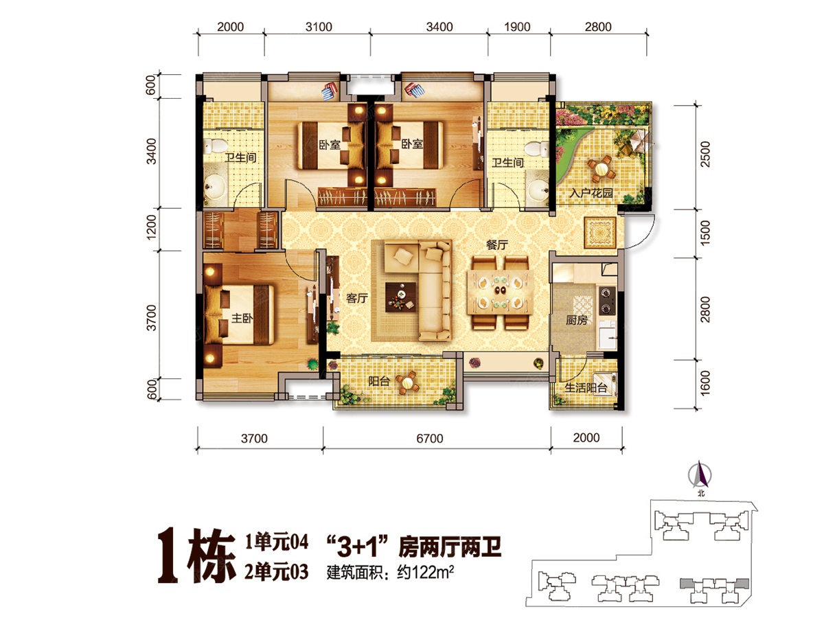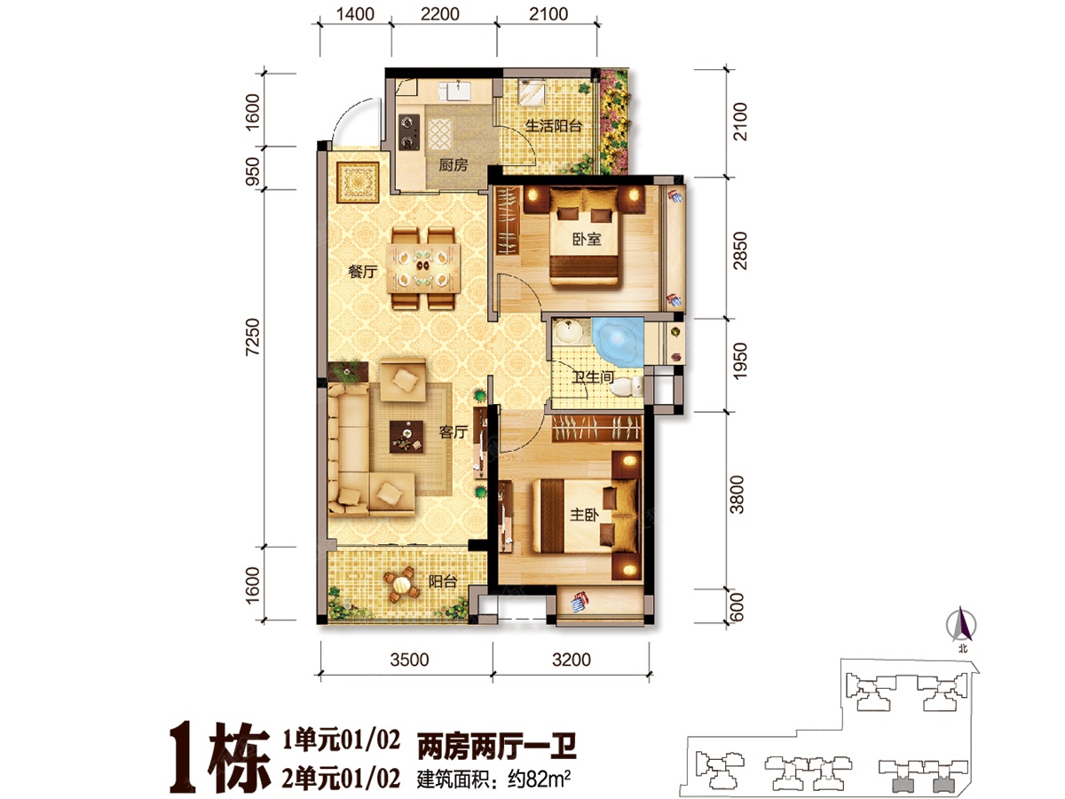 2室2厅1卫-1栋1单元01、02/2单元01、02