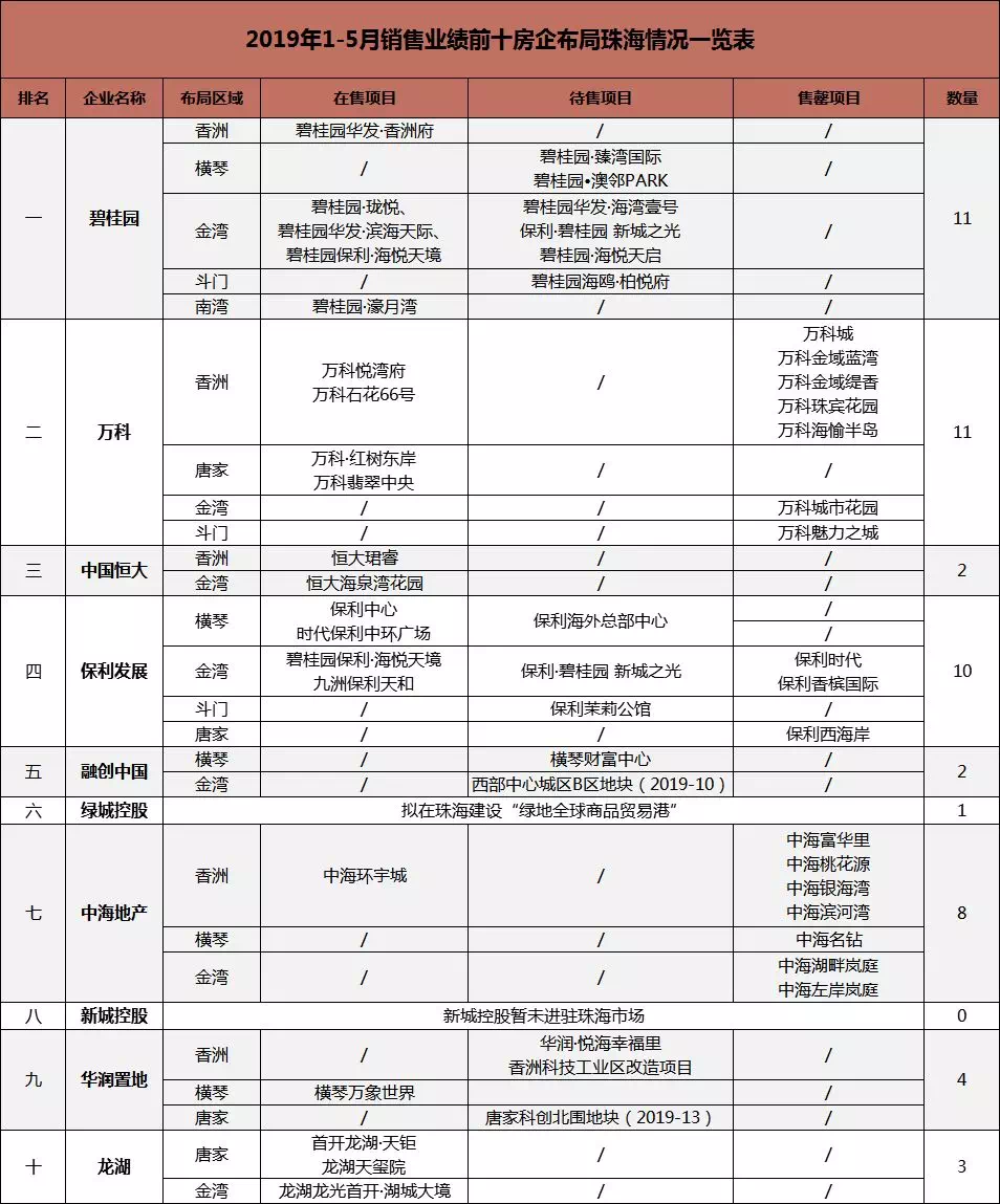本文盘点了前十房企在珠海布局的情况与动态信息。