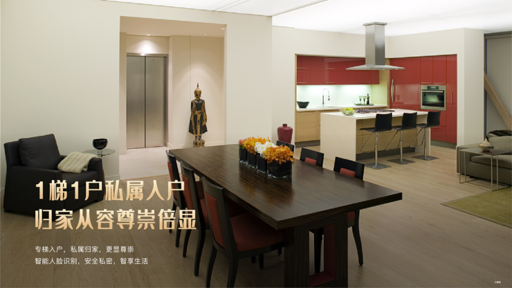 人脸识别进社区,专属电梯入户,私密性强,归家从容尊崇倍显。上下班,电梯的空间始终是舒适的。无论出门、归家,电梯都直接入户,尊贵与私密同在,舒适与效率并存,业主感受达到优质。