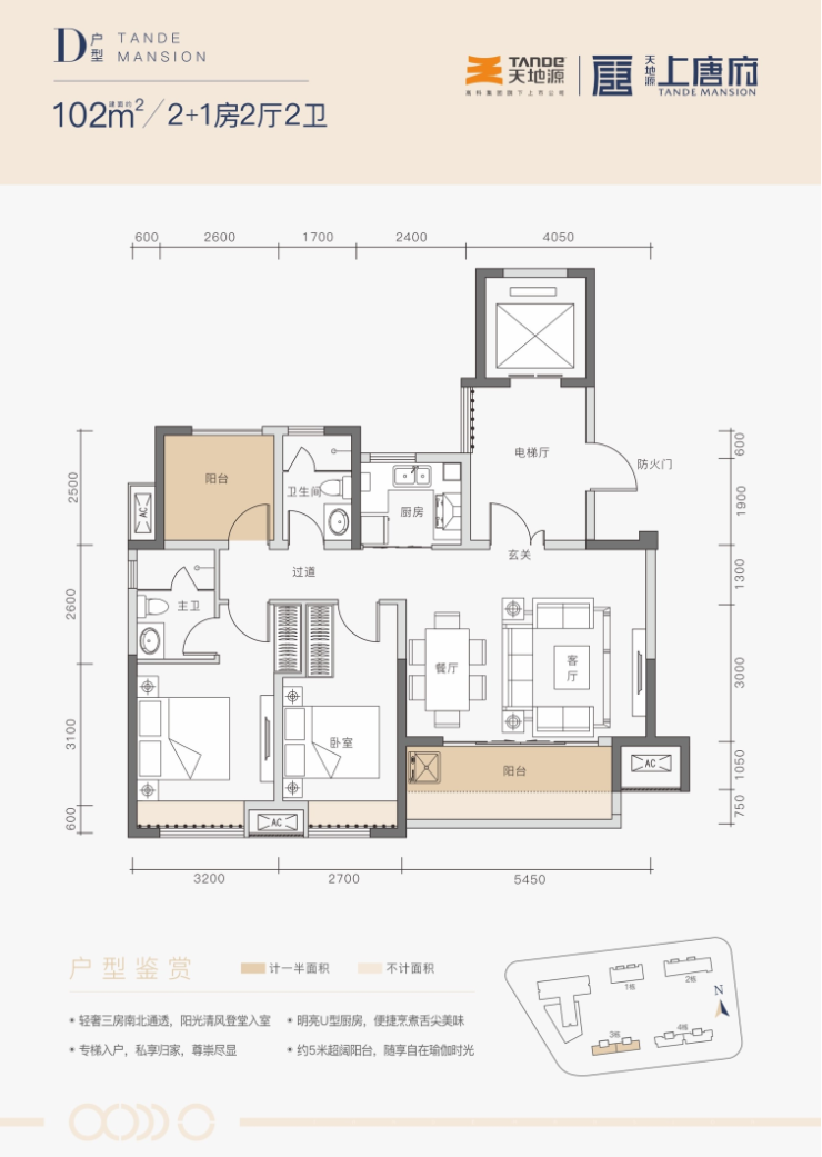 户型方正,南北通透,清风穿堂。大开间窄进深,通透明亮,阳光常伴。另外,户型实用率高,享有至阔阳台,室内外生活逸趣自然延伸。同样买建面100平米的房子,在上唐府,能比别人享受更多的使用空间。度假自住、产业投资两相宜。